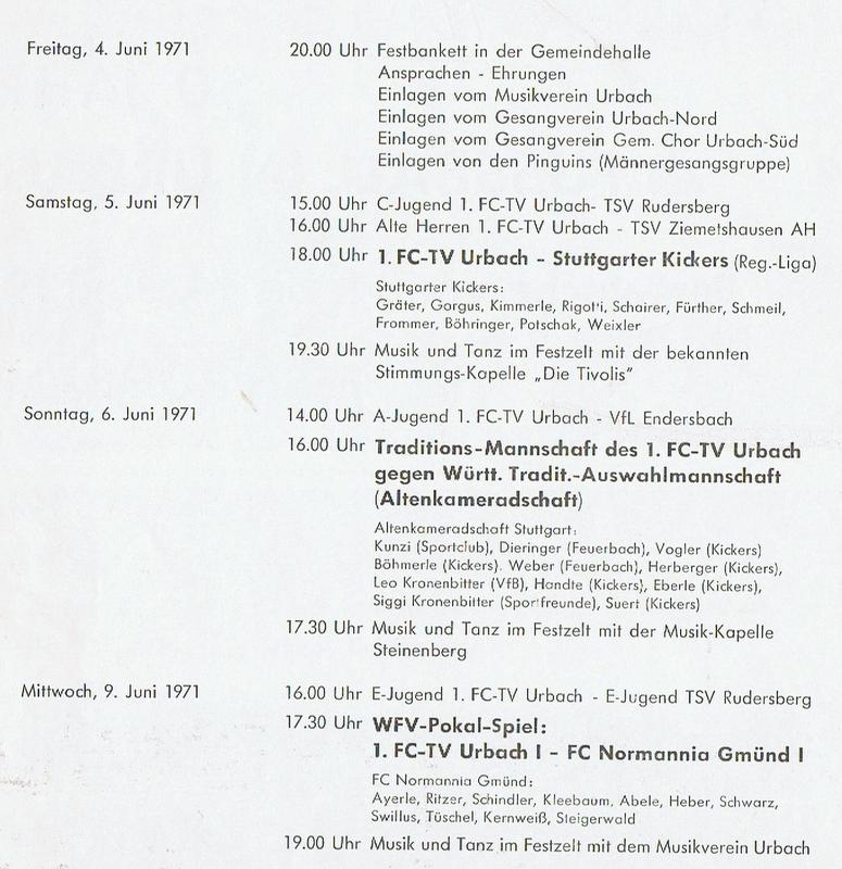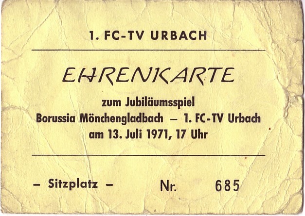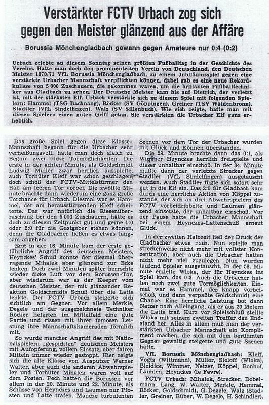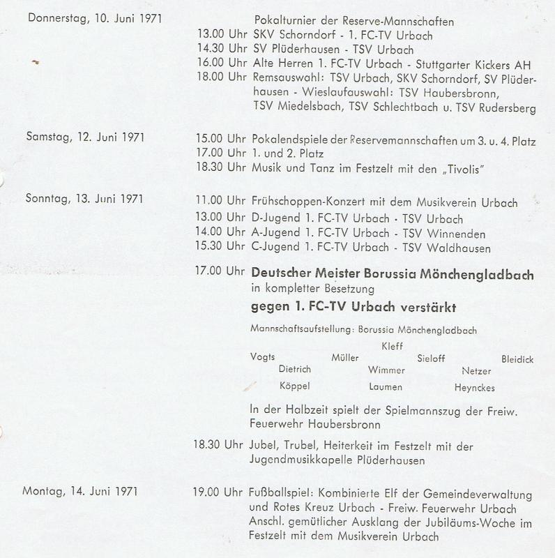 Ein Bildersammlung zur Fußball-Begegnung zwischen dem FCTV Urbach und Borussia Mönchengladbach am 13.06.1971